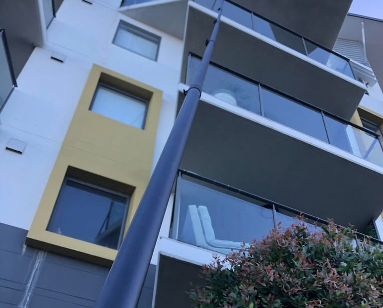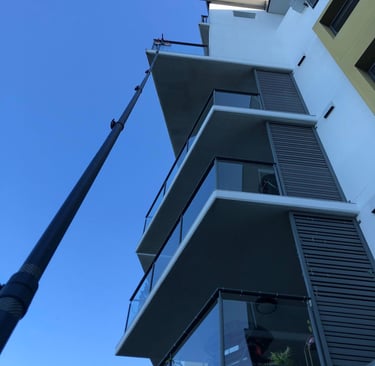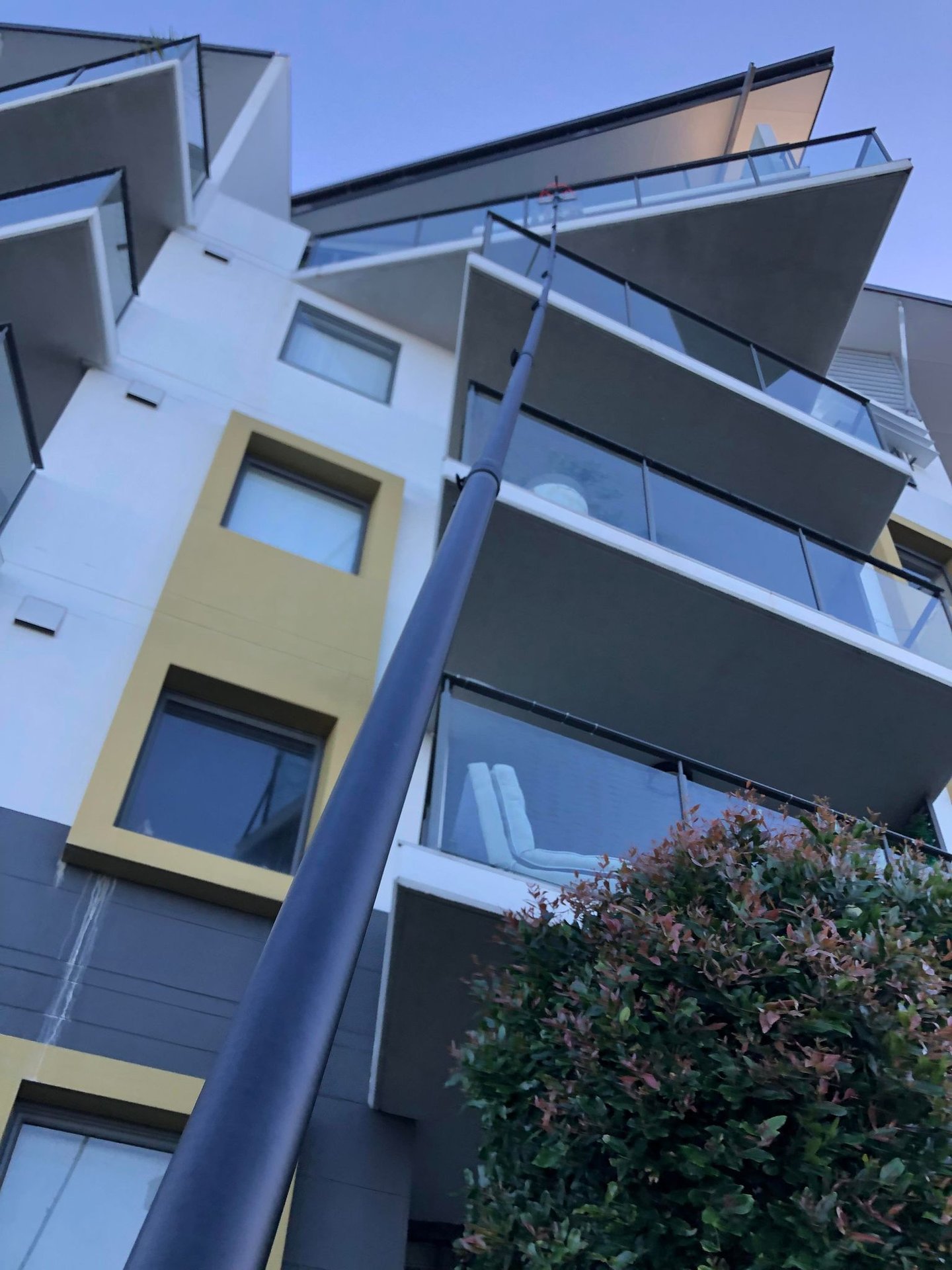 Professional internal and external window cleaning including frames, tracks and screens. Commercial, residential or place of business. De-ionised pure water fed pole systems for the hardest to reach windows.